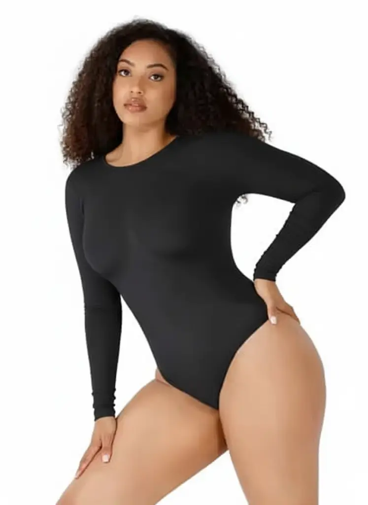 Buy UK Seamless Long Sleeve Shaping Bodysuit | Taupe Figure-Hugging Top | nonnielegance.com